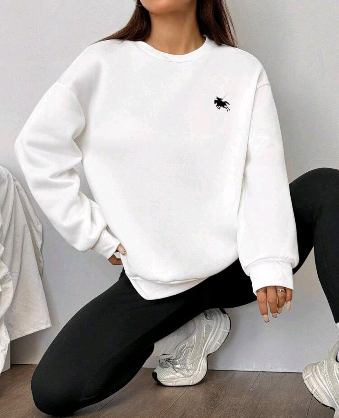 Luźna bluza z okrągłym dekoltem i obcisłe legginsy
