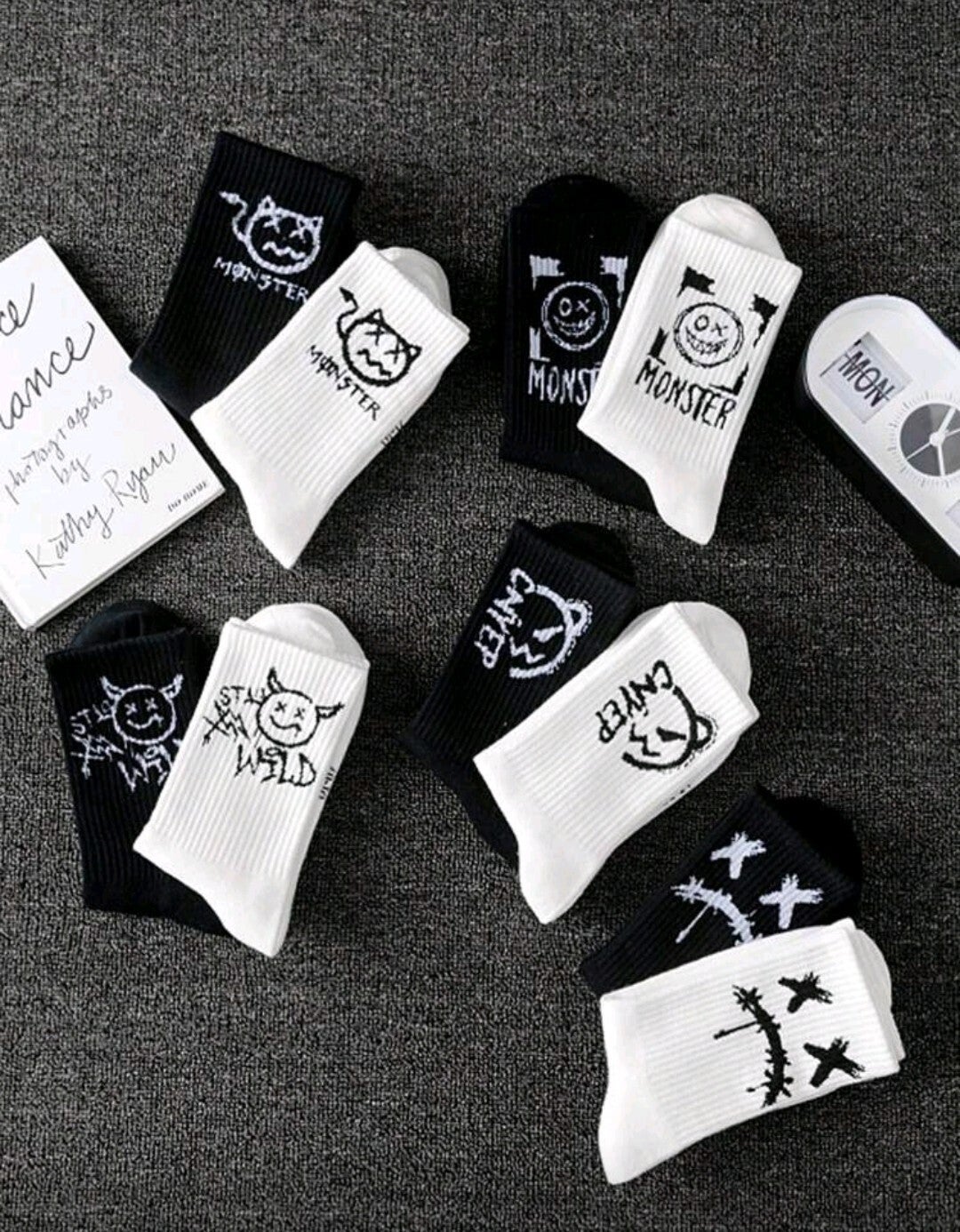 5 par męskich skarpetek z nadrukiem Ghost Face, do koszykówki, w stylu casual, czarno-białe, odpowiednie do codziennego noszenia wiosną/jesienią.